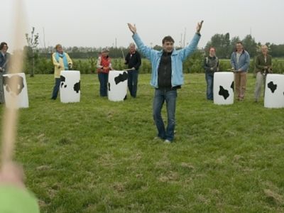 Een bijzondere percussieworkshop voor gezelschappen, bedrijven en instellingen. Trommelen op veevoerder vaten. Ja, bij Jeu de Boer kan het! Een unieke manier van vermaak, buiten in het weiland of in de koeienstal. Lekker uitleven op de veevoedervaten van de boerderij. In deze workshop leert u binnen de kortste tijd een ritme bespelen. U werkt intensief samen met de andere deelnemers en het resultaat is altijd een afgerond swingend muziekstuk. De deelnemers krijgen een ritme te spelen. De patronen zijn simpel, maar bij elkaar vormen ze een flitsend muziekstuk. Na afloop heerst altijd grote voldoening: "Wie had ooit gedacht dat we zo snel, zo fantastisch muziek konden maken!"